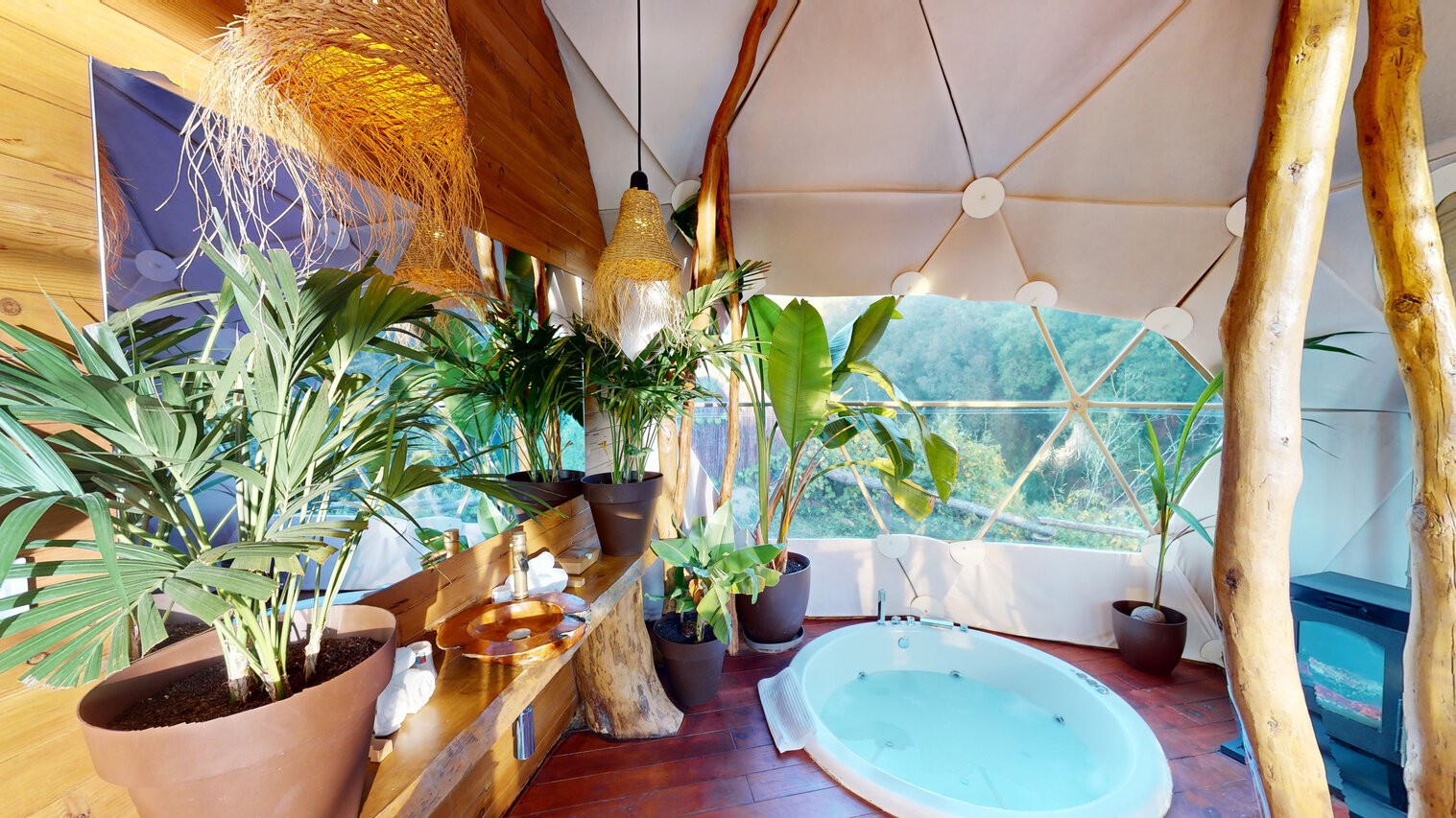 Banheira de hidro com vista panorâmica para Floresta de Cacau e para o Rio de Contas.